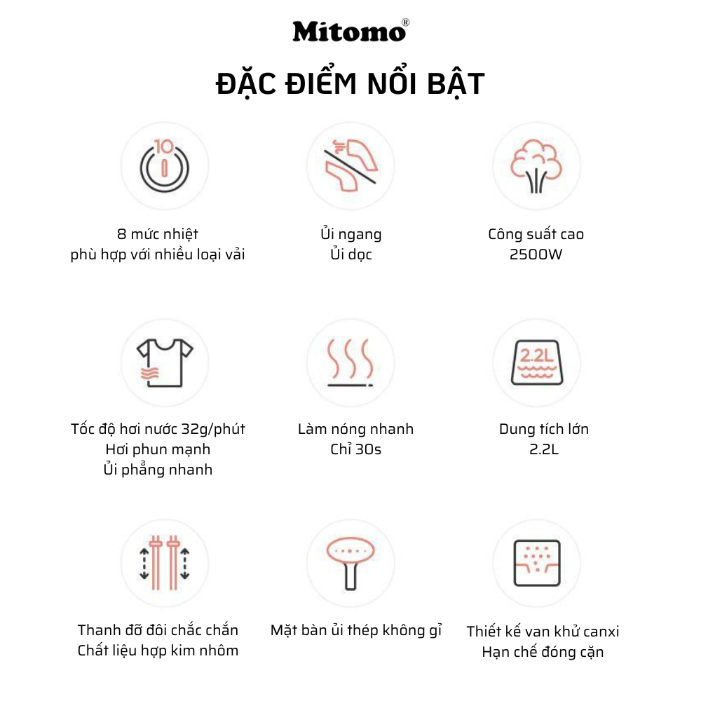 TÍNH NĂNG NỔI BẬT BÀN LÀ HƠI NƯỚC MITOMO GC-899 NEO