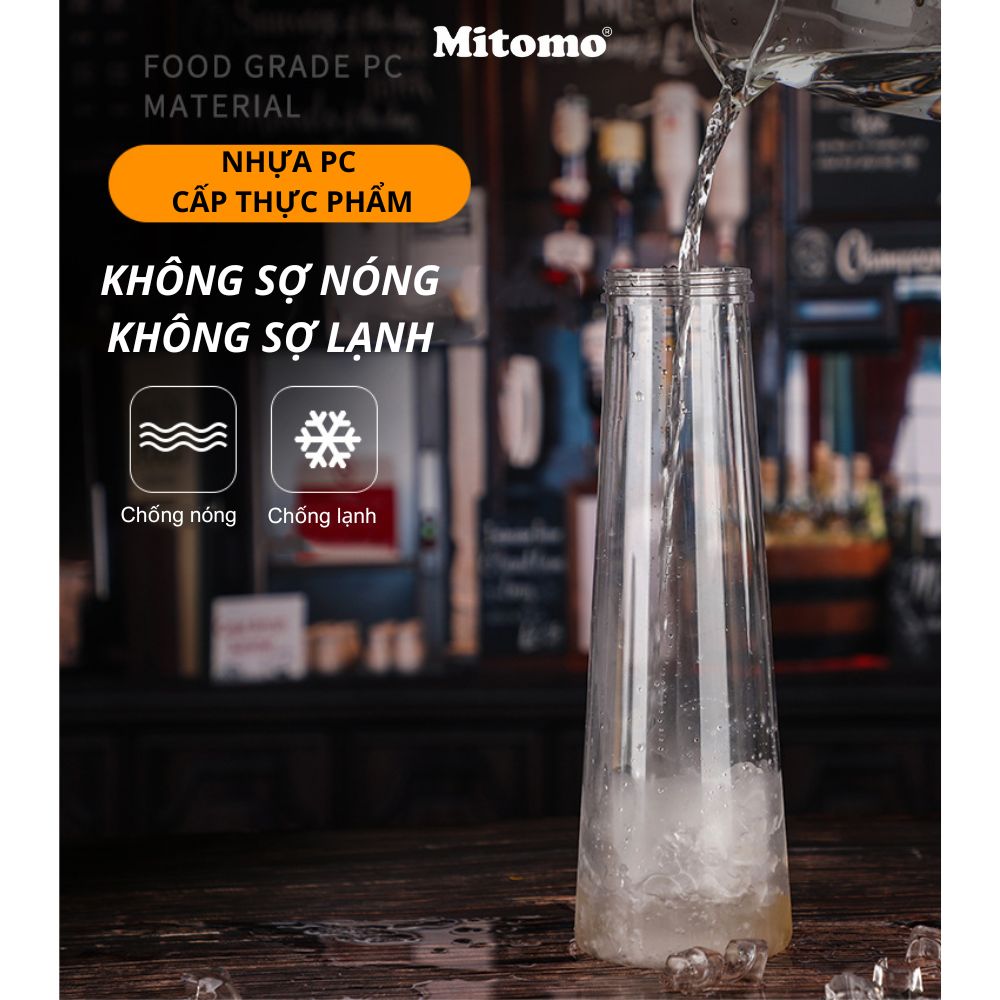 Bình nhựa Mitomo 1000ml với thiết kế nhỏ gọn, đẹp mắt và độ tiện ích cao rất phù hợp dùng cho bếp ăn gia đình, quán ăn, nhà hàng hay phá cách hơn là tạo điểm nhấn cho quán trà sữa, sinh tố…