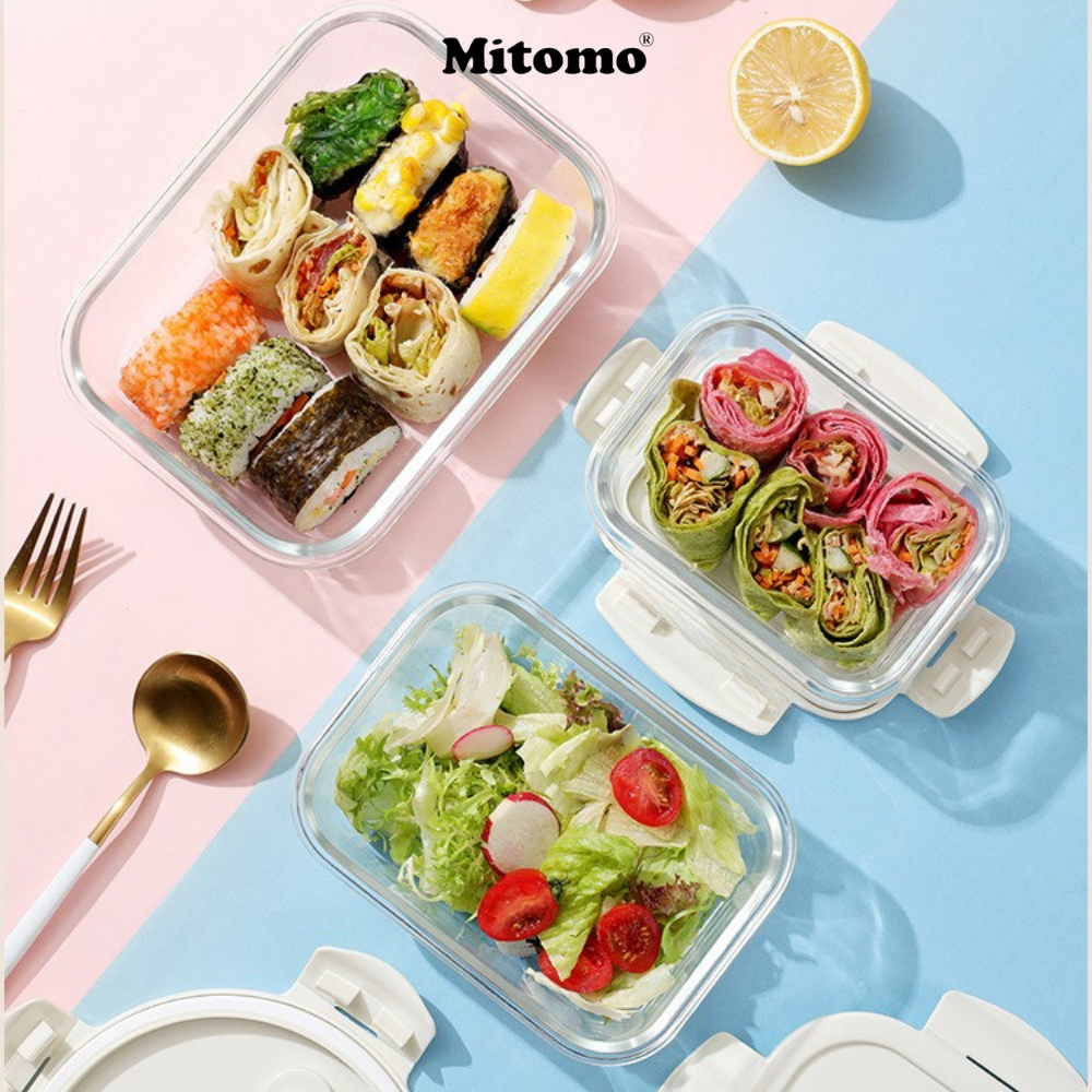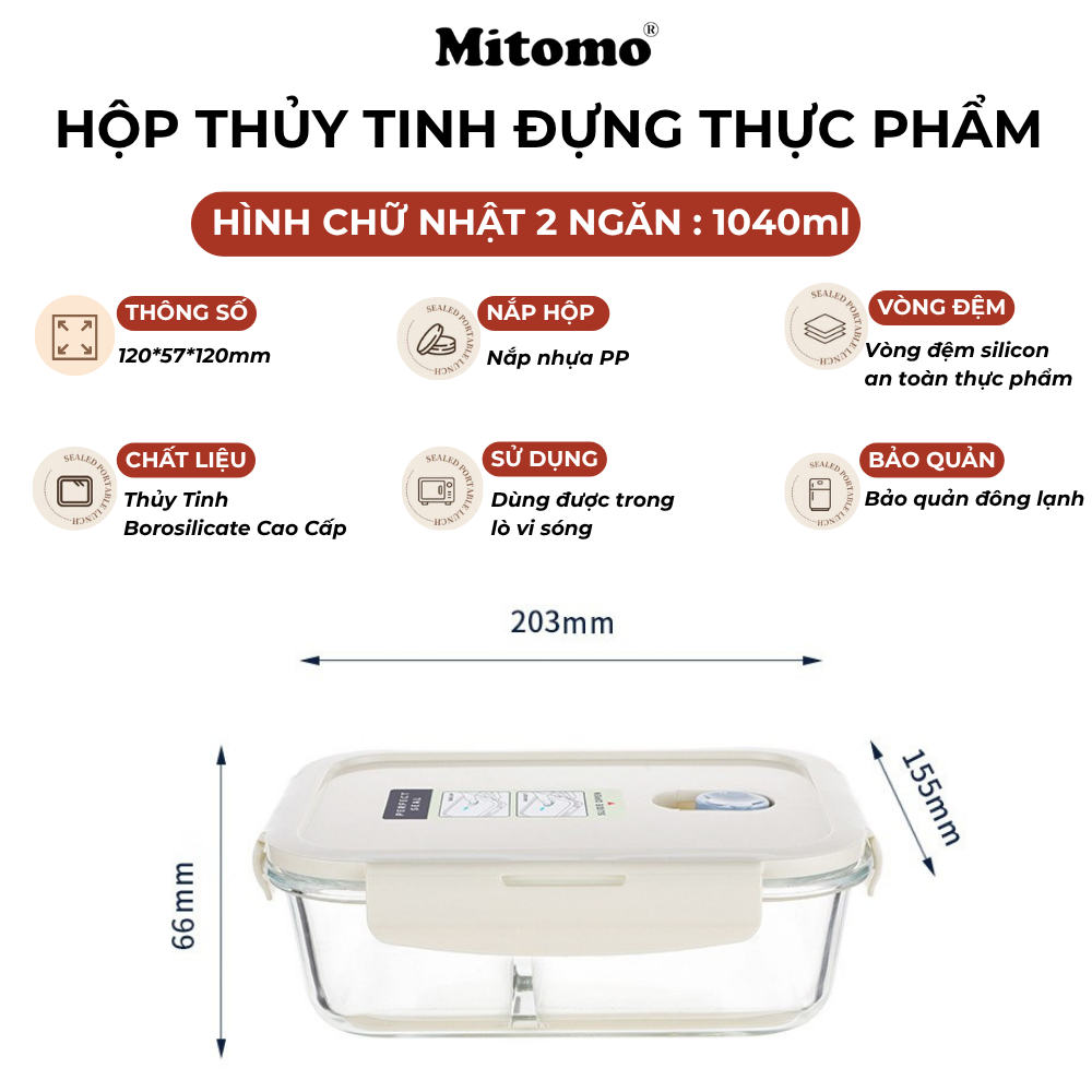 ĐẶC ĐIỂM NỔI BẬT BỘ HỘP 3 HỘP THUỶ TINH ĐỰNG THỰC PHẨM MITOMO HÌNH CHỮ NHẬT 2 NGĂN