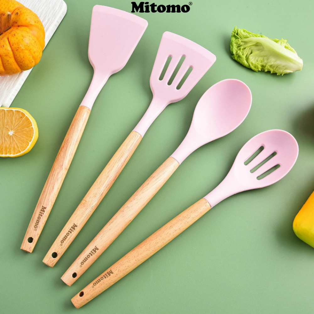 GIỚI THIỆU CHUNG VỀ BỘ DỤNG CỤ NẤU ĂN SILICONE CÁN GỖ TỰ NHIÊN 12 MÓN MITOMO