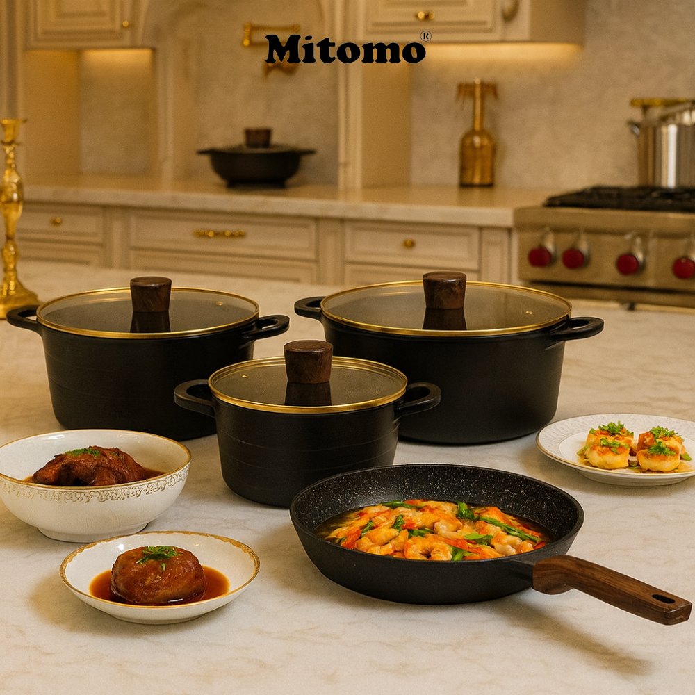 ƯU ĐIỂM VƯỢT TRỘI CỦA BỘ NỒI CHẢO ĐÁ GỐM CAO CẤP MITOMO DSP CA018-S01-BLACK
