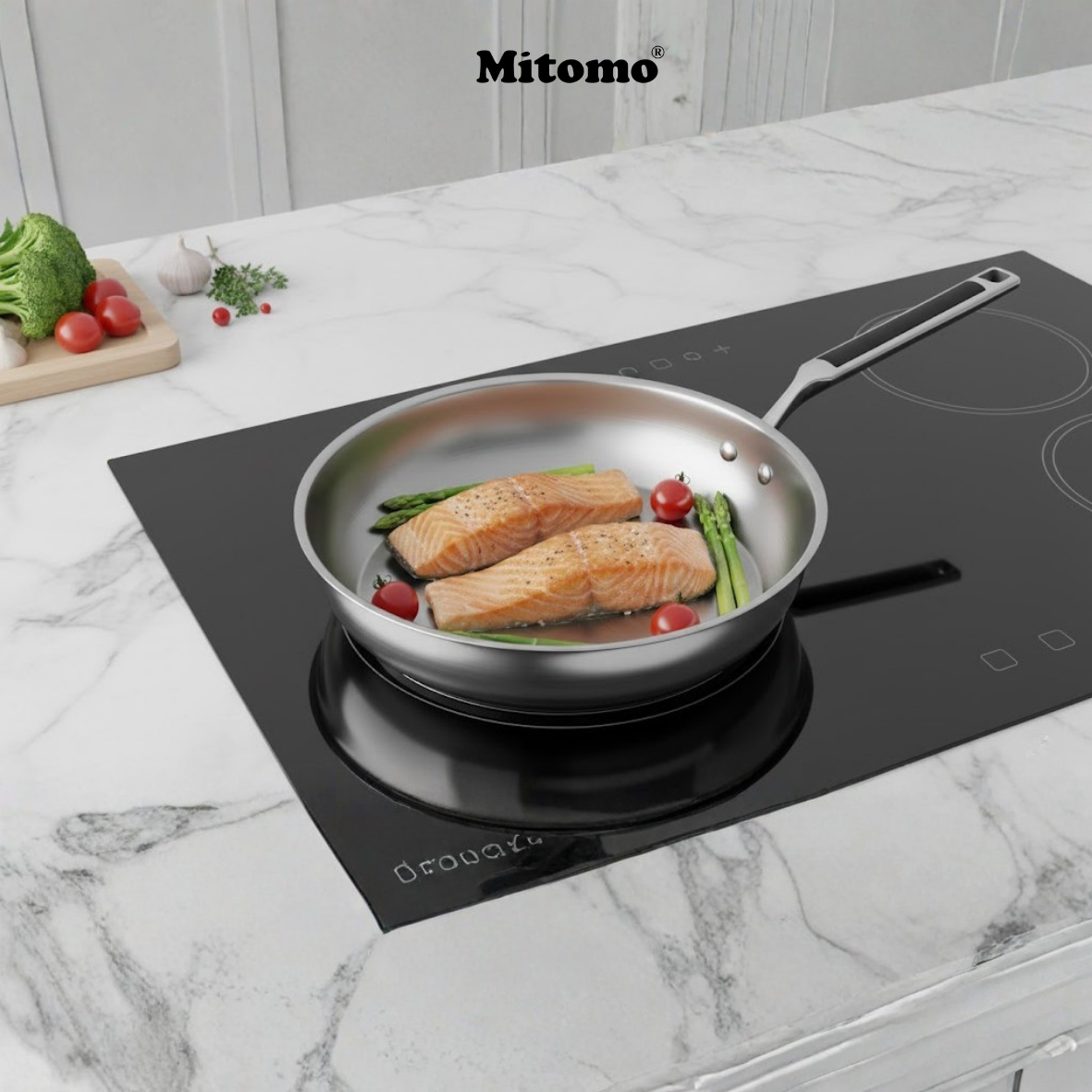 Chảo inox chống dính tự nhiên Mitomo vừa là công cụ nấu ăn, vừa là điểm nhấn nội thất hiện đại.