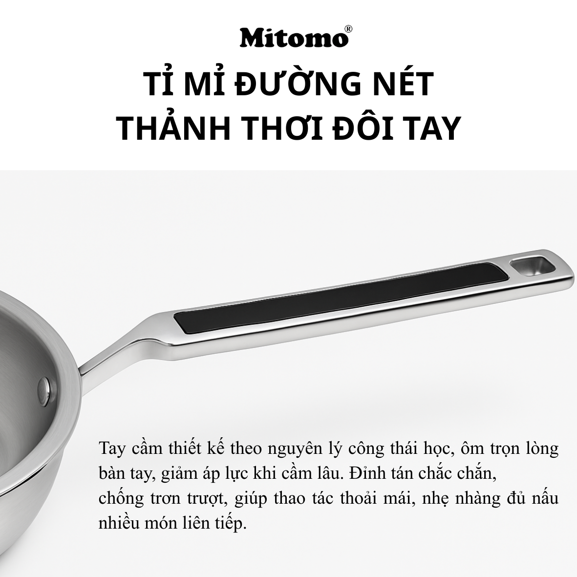 Chảo Inox Cao Cấp Mitomo DSP CS002-C24 là sự kết hợp hoàn hảo giữa độ bền – thẩm mỹ – và hiệu suất nấu nướng.