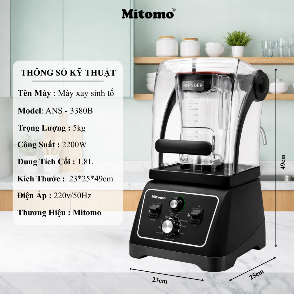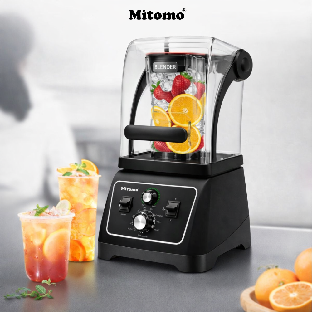 Mitomo ANS-3380B là dòng máy xay sinh tố công nghiệp cao cấp có hộp chống ồn, được thiết kế chuyên biệt cho quán cafe – sinh tố – trà sữa – nước ép cần xay đá thường xuyên nhưng vẫn đảm bảo vận hành êm ái – bền bỉ – ổn định lâu dài.