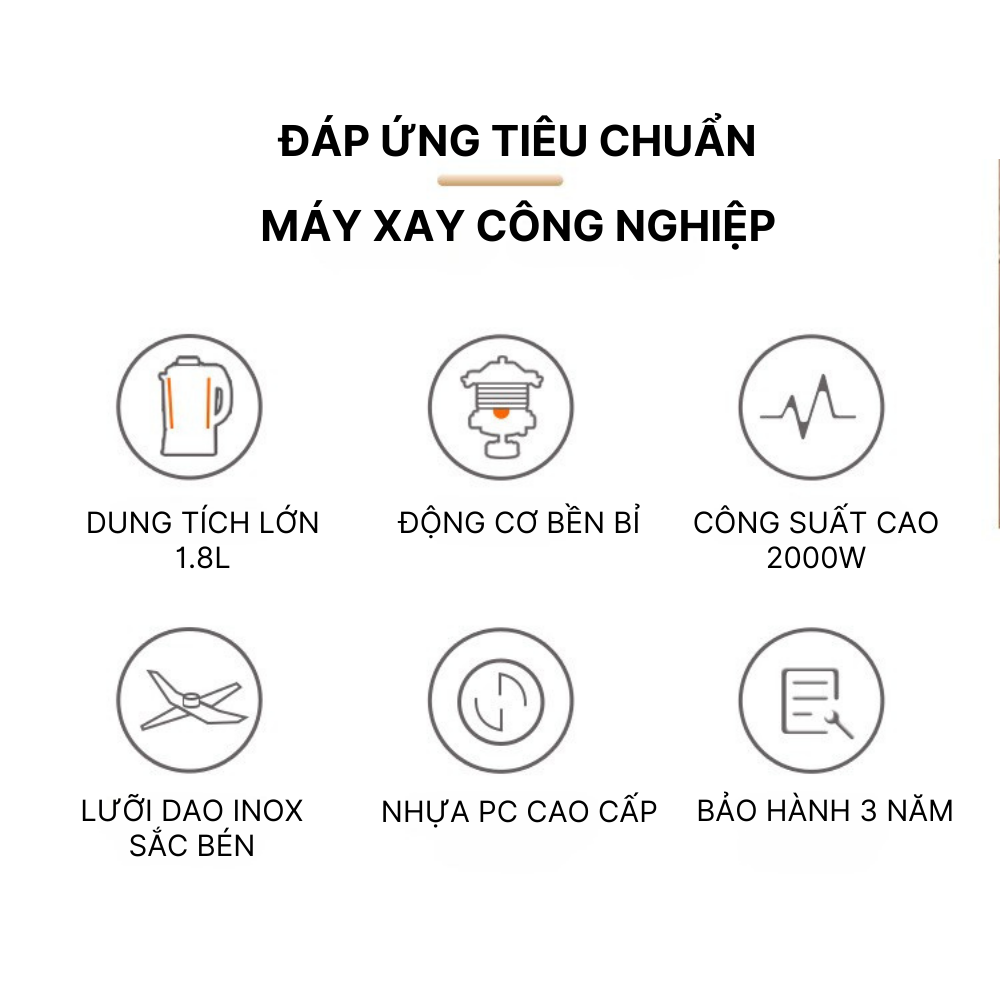 Thân máy được bọc một lớp nhựa PC chắc chắc, rất an toàn với sức khỏe người sử dụng và đặc biệt là cực kì dễ vệ sinh, chùi rửa sau khi xay. Toàn bộ cối xay được chế tạo bằng nhựa PC cấp thực phẩm, cấu tạo 5 lớp dày dặn, chống nứt vỡ tối đa, an toàn cho sức khỏe.