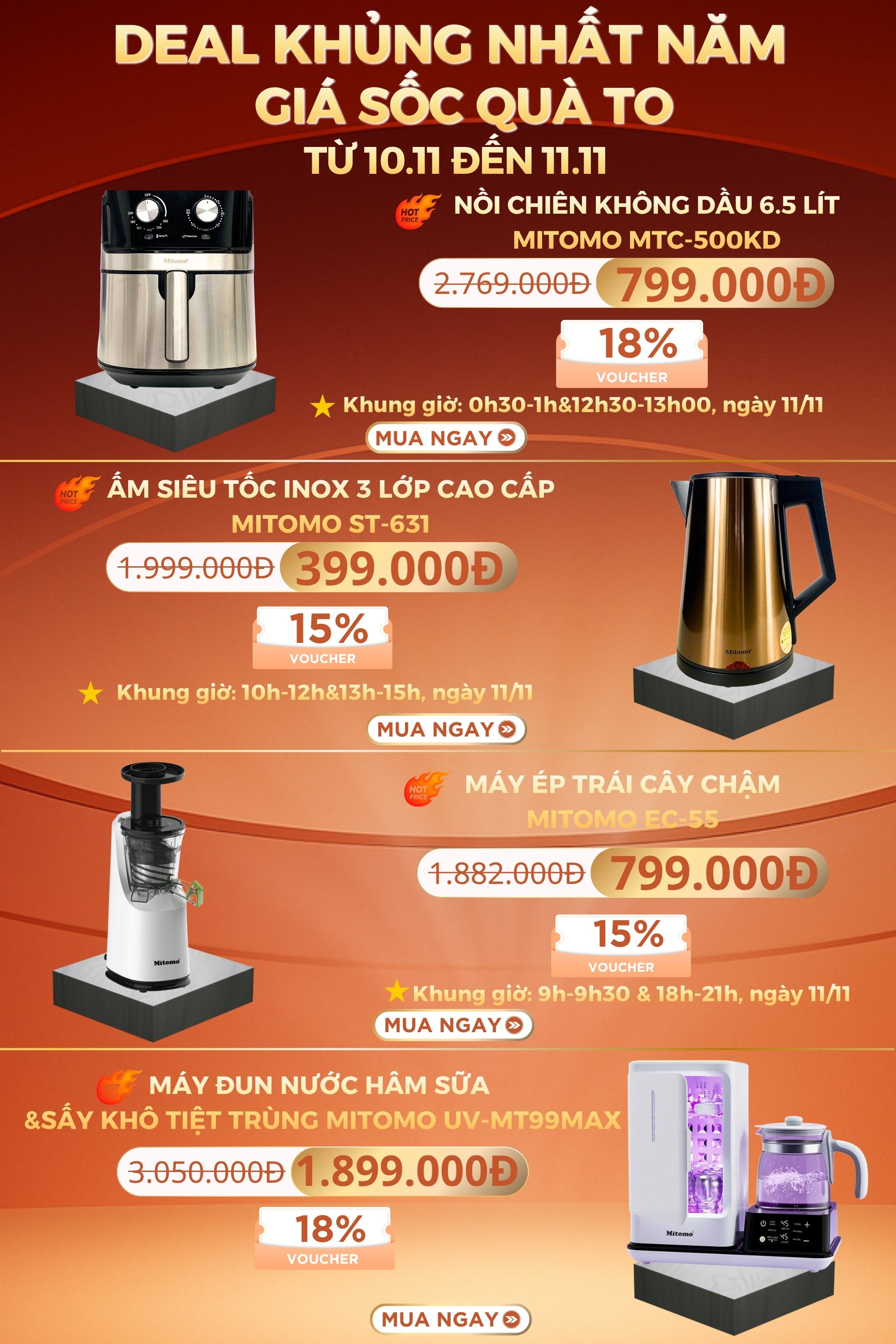 👉 Chốt đơn ngay hôm nay để không bỏ lỡ cơ hội săn deal vàng – giá sốc – quà siêu khủng từ Mitomo nhé!