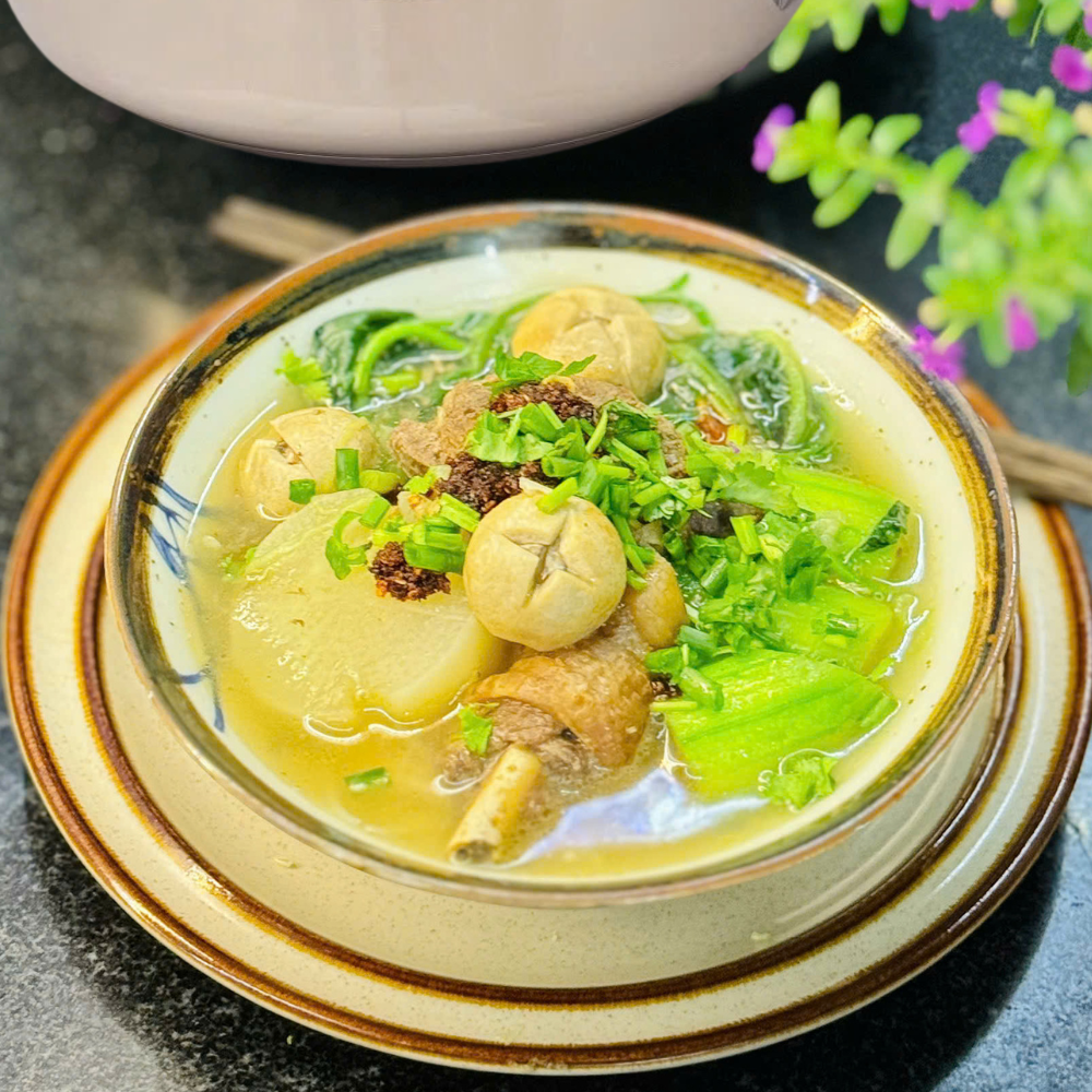 - Chỉ mất khoảng 35–40 phút nấu chậm, thịt gà đã chín nhừ, mềm nhưng không nát, nước dùng trong veo, vị ngọt thanh từ nước dừa và củ cải, lại dậy mùi sả thơm lừng, kích thích vị giác, cả nhà đều thích mê!
