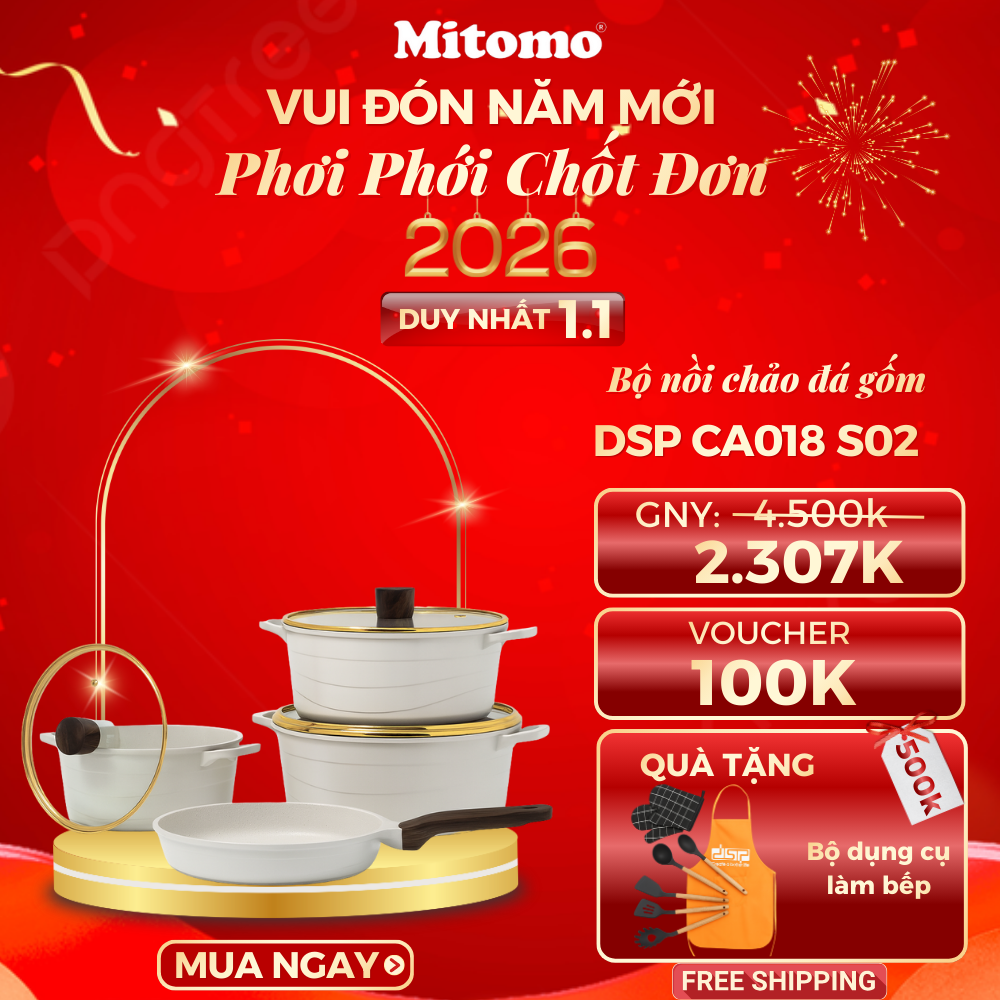 Hiểu điều đó, Mitomo Việt Nam chính thức tung ra chương trình “VUI ĐÓN NĂM MỚI – PHƠI PHỚI CHỐT ĐƠN” với chuỗi ưu đãi gia dụng lớn đầu năm, kết hợp giảm giá sâu – voucher khủng – quà tặng thiết thực, giúp bạn mua sắm thông minh và tiết kiệm tối đa ngay từ những ngày đầu năm.